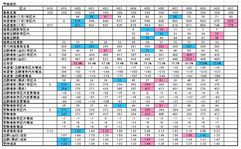 平成31年度甲南高校の予想倍率 鹿児島県高校入試 高校教育を考えてみよう